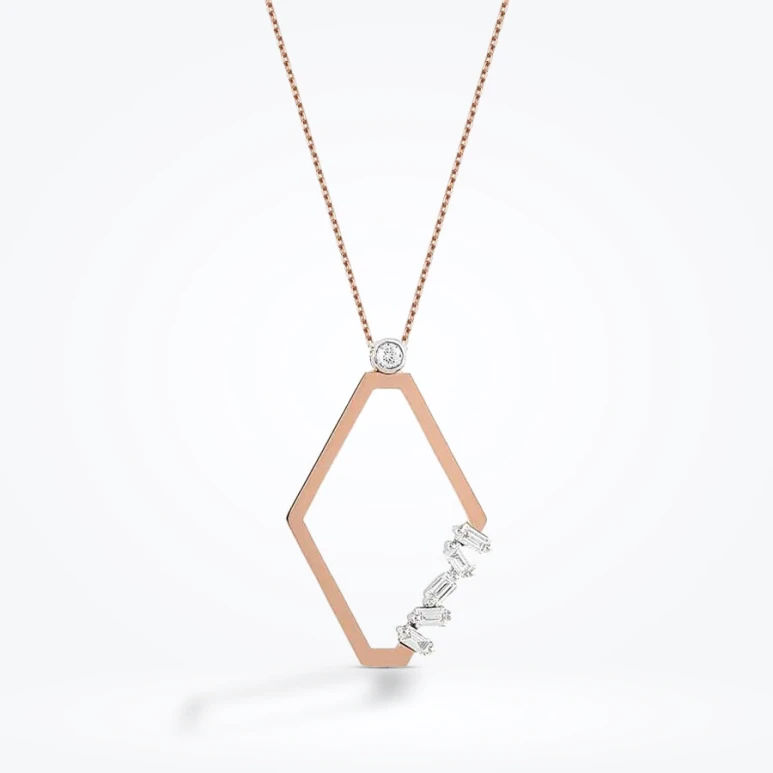 0.15 Karat Pırlanta Baget Altıgen Kolye T26165