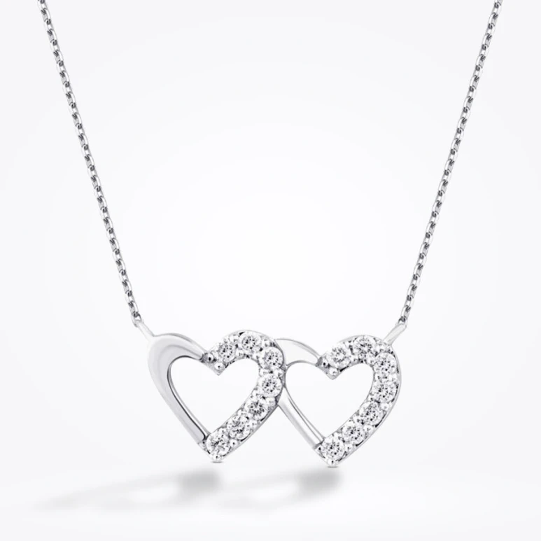 0.15 Karat Pırlanta Çift Kalp Kolye