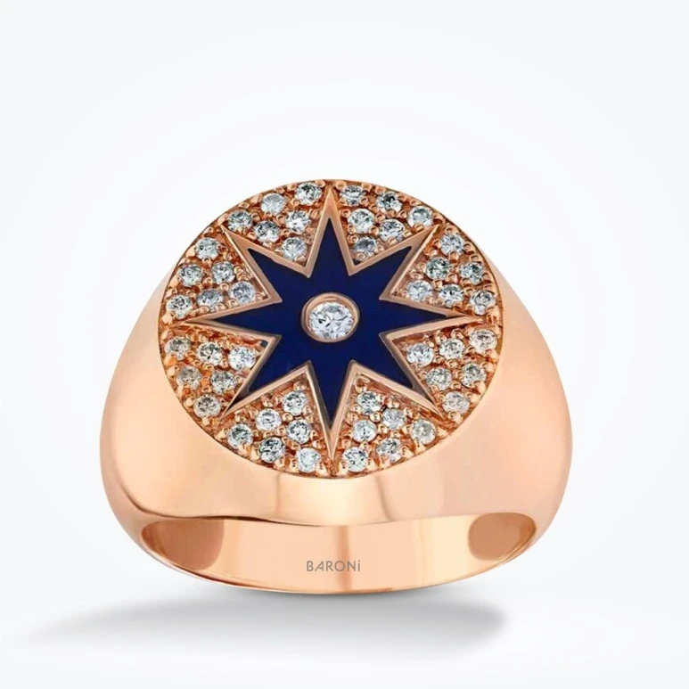 0.40 Karat Pırlanta Lacivert Yıldız Şovalye Yüzük T25657