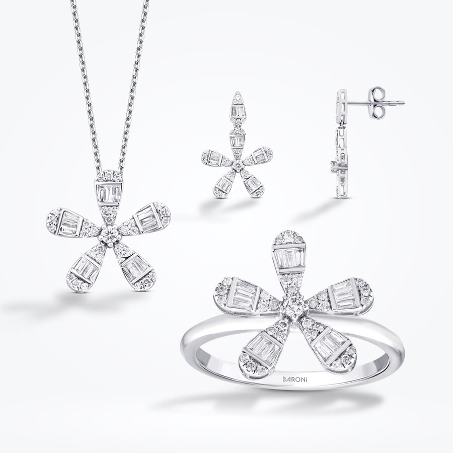 0.96 Karat Pırlanta Baget Çiçek Set (474)