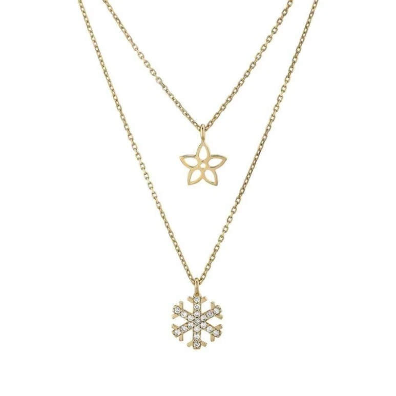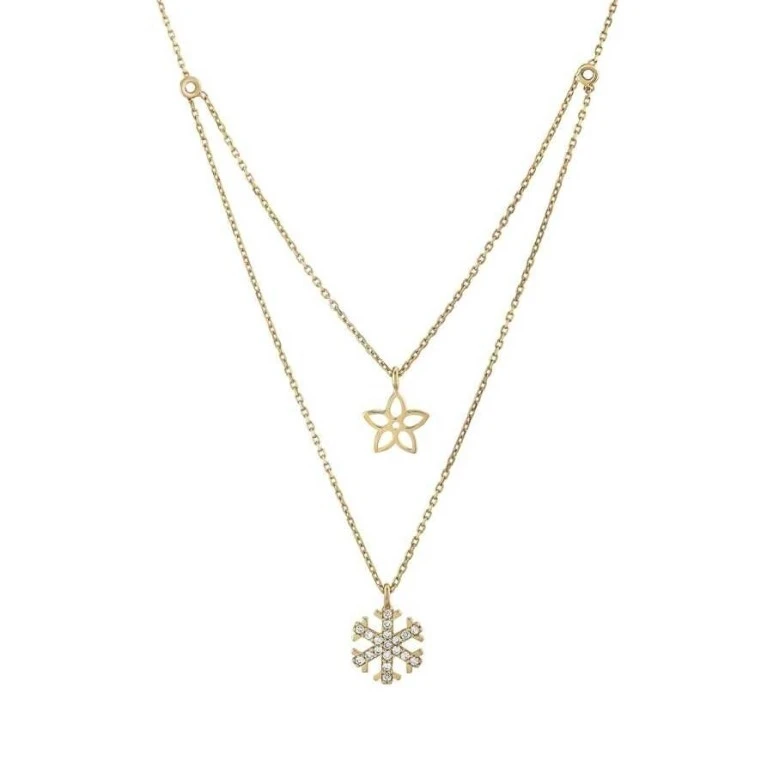 Altın Çiçek ve Kar Tanesi Çift Kolye