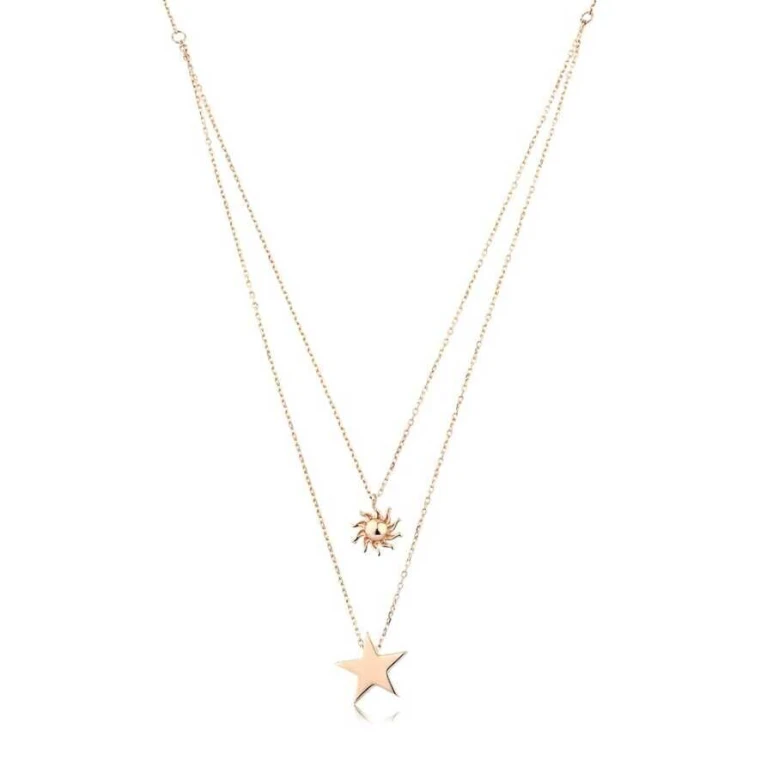 Altın Güneş ve Yıldız Çift Kolye T23152