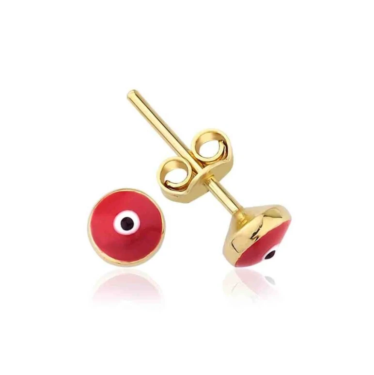 Altın Kırmızı Nazar Çocuk Küpe