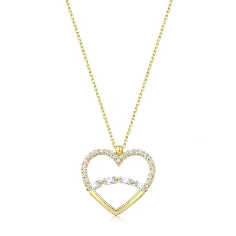 Altın Taşlı Baget Kalp Kolye T22869