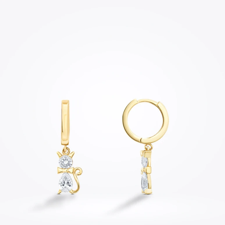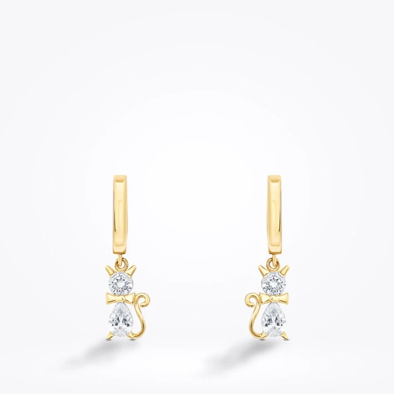 Altın Taşlı Kedi Küpe