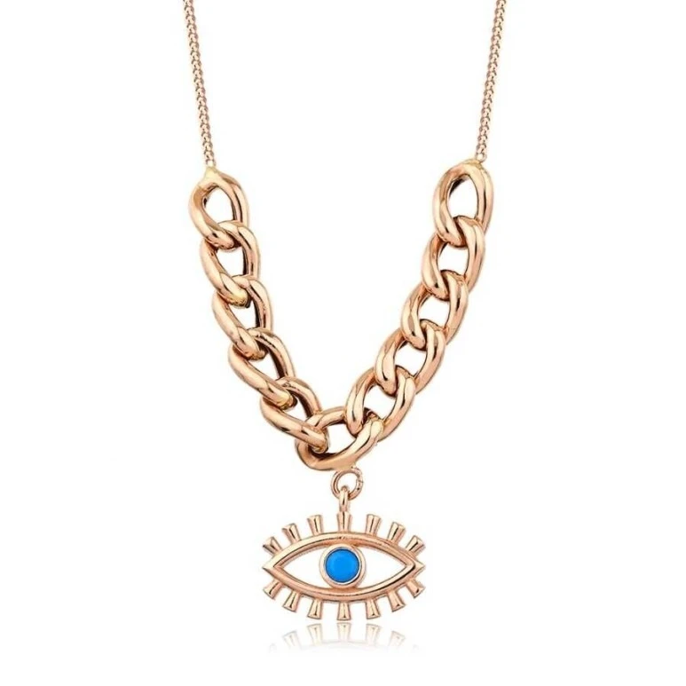Altın Yarı Ataçlı Mavi Göz Kolye