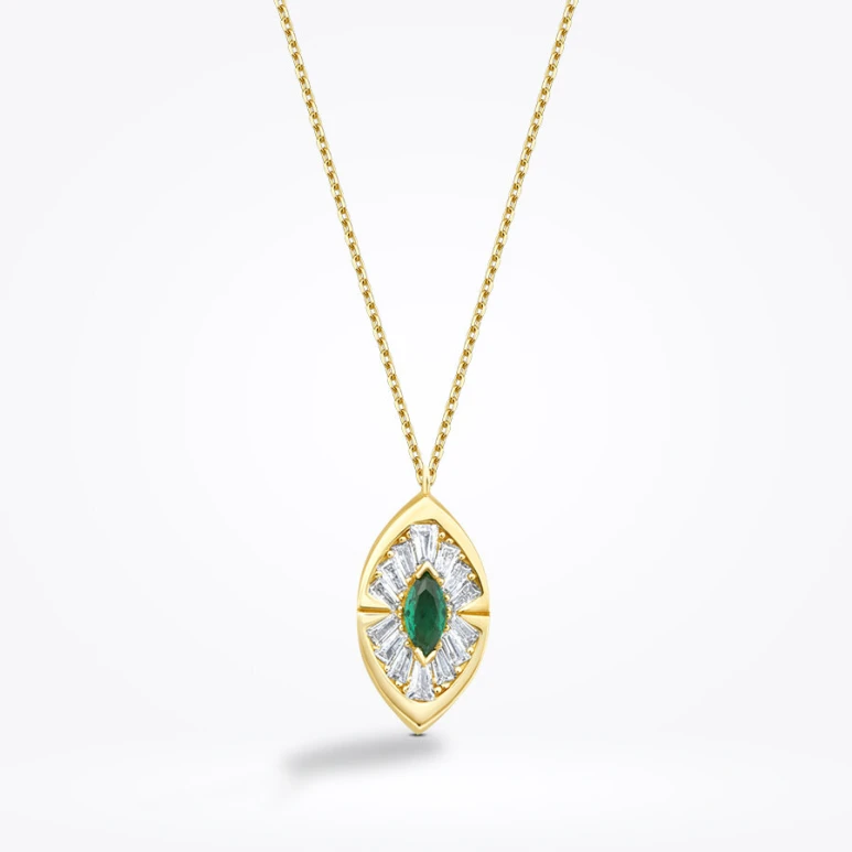 Altın Yeşil Taşlı Markiz Kolye T27075
