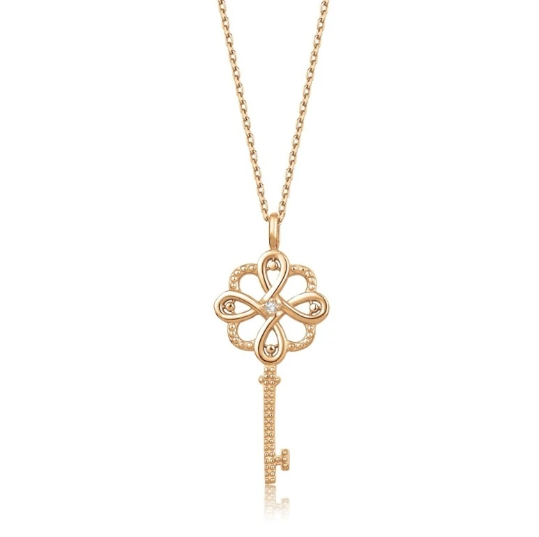 Pırlantalı Rose Gümüş Sonsuzluk Anahtar Kolye